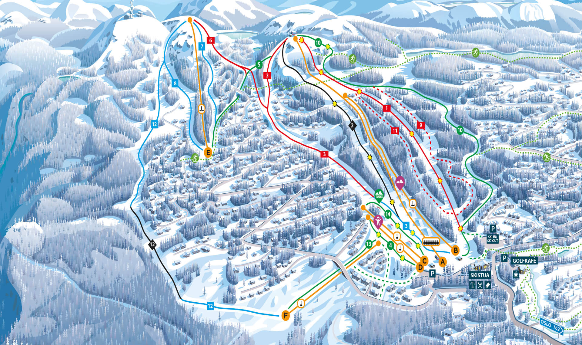 For the cross-country skiers, there are hundreds of kilometers of well-groomed trails in a breathtaking environment. Excellent starting points for your cross-country trips are found at Nesfjellet Alpin and Nesfjellet Golf. Take the lift to the top of Snaufjellet and follow the signs back to the Alpine Center - unforgettable!