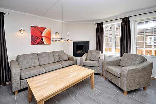 Aasgard Fjelltun is located at Fageråsen Panorama . Apartment on second floor, 8 beds, 70 m², livingroom with combined kitchen, 3 bedrooms, 2 showers, 2 WC.