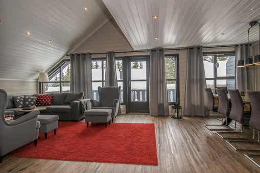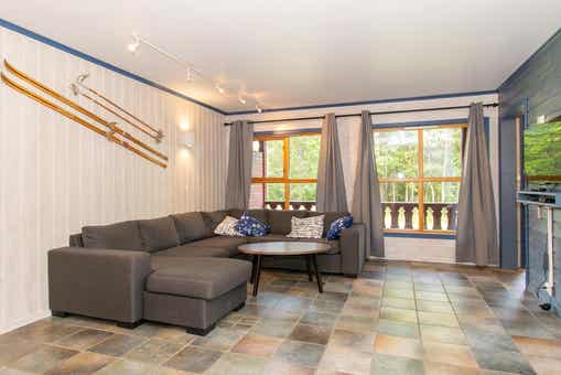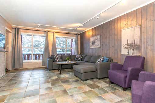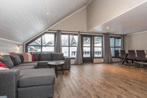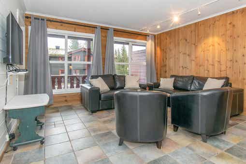 Bakkebygrenda is located at Turistsenteret . Apartment on first floor, 10 beds, 132 m², livingroom with combined kitchen, 4 bedrooms, 2 showers, 3 WC, 1 sauna, whirlpool bath.