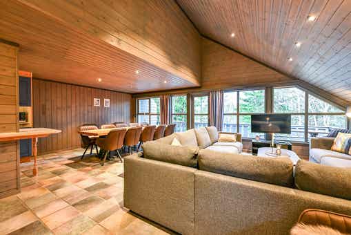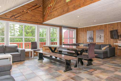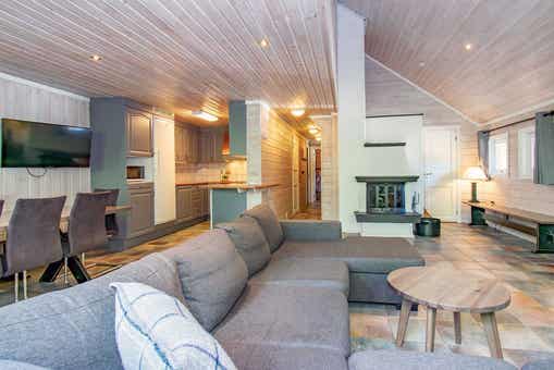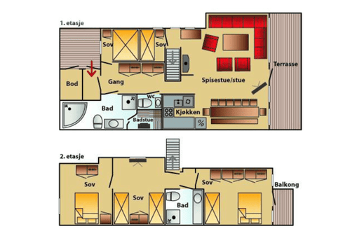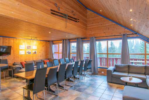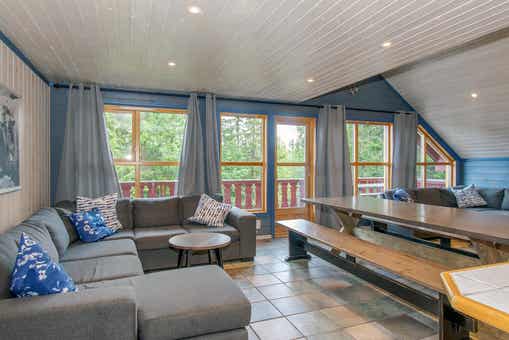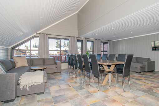 Bakkebygrenda is located at Turistsenteret . Apartment on first floor, 14+2 beds, 132 m², livingroom with combined kitchen, 5 bedrooms, 2 showers, 3 WC, 1 sauna.